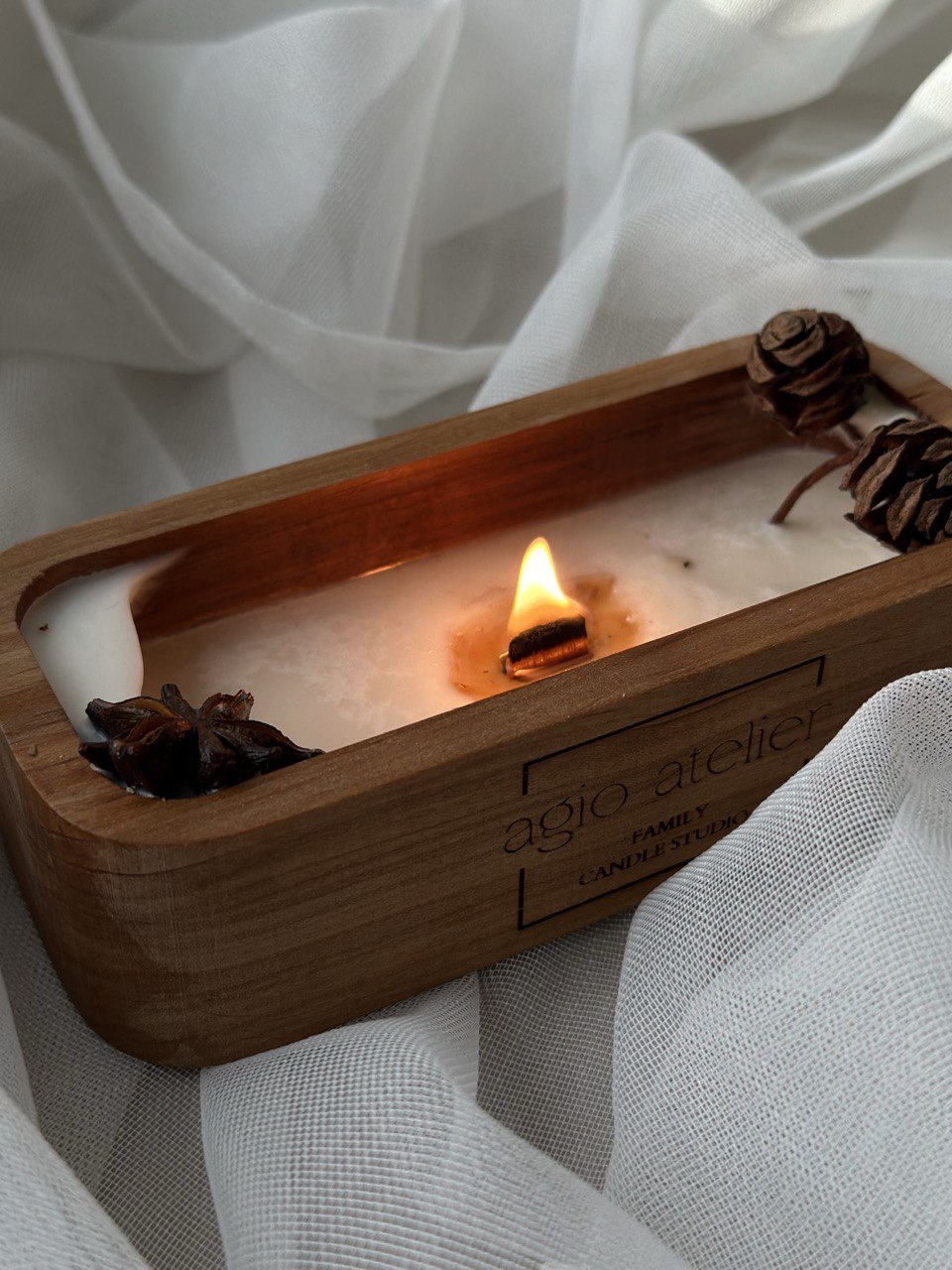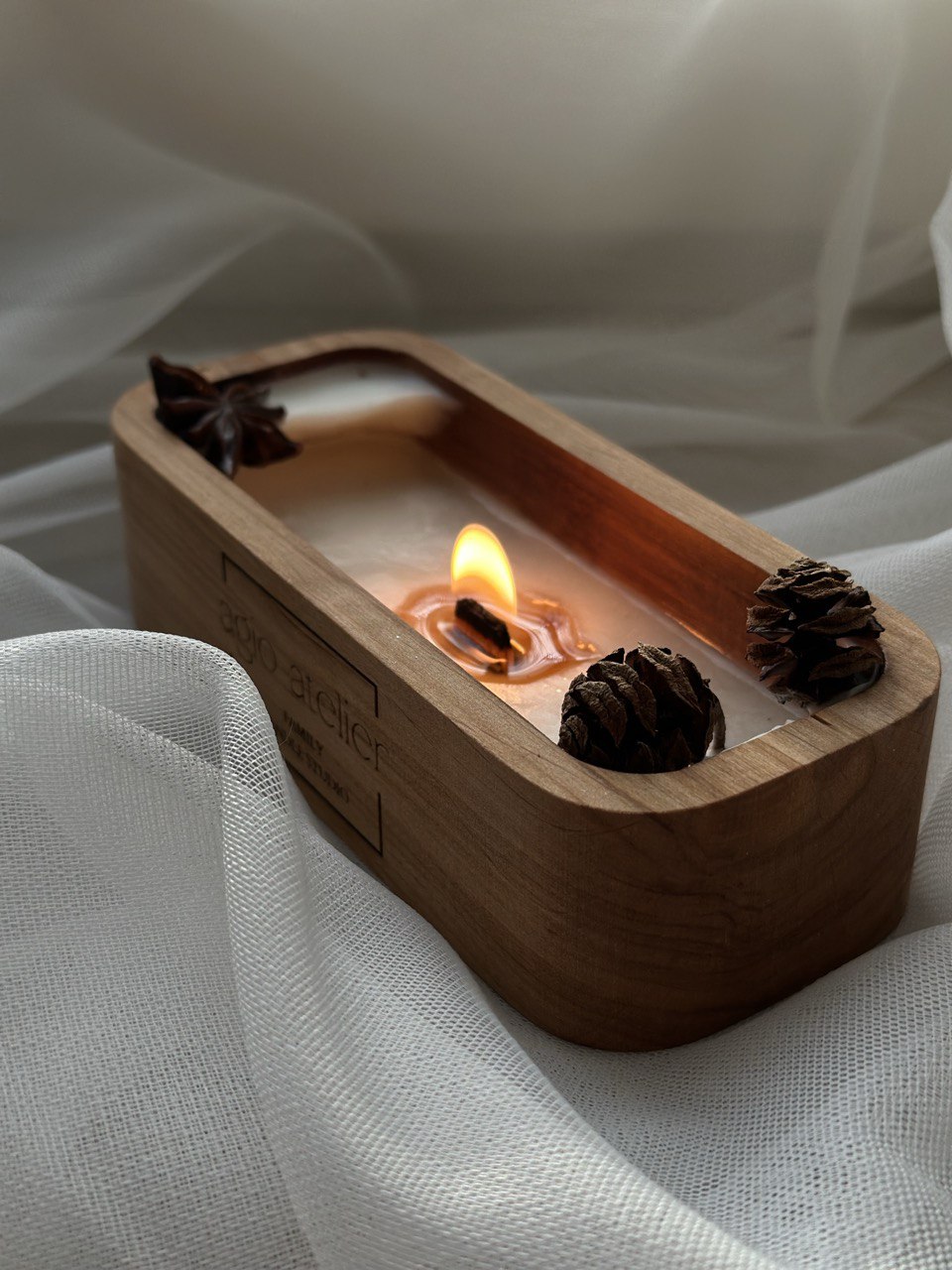 Die Kerze niemals auf oder in der Nähe von Gegenständen abbrennen, die Feuer fangen können.