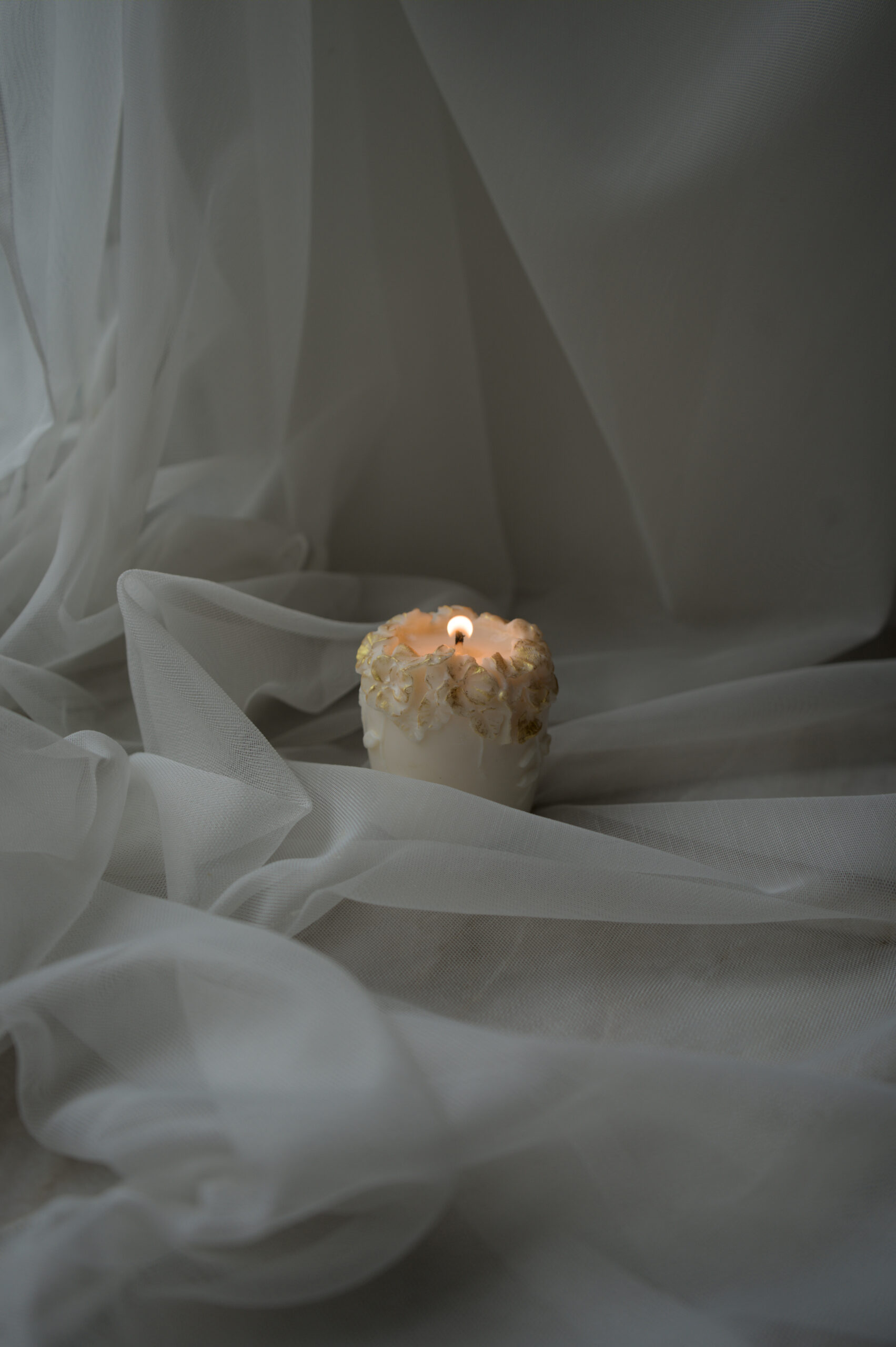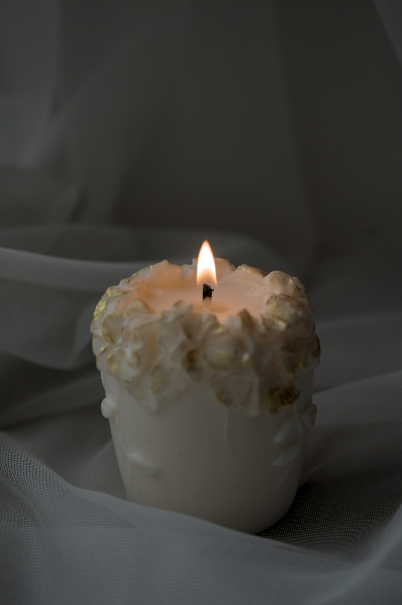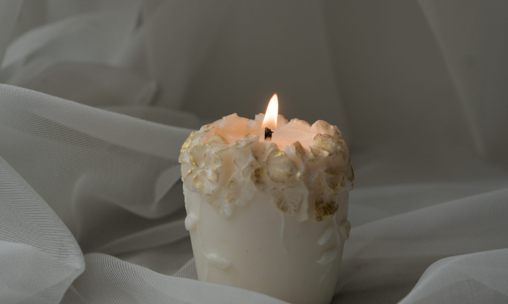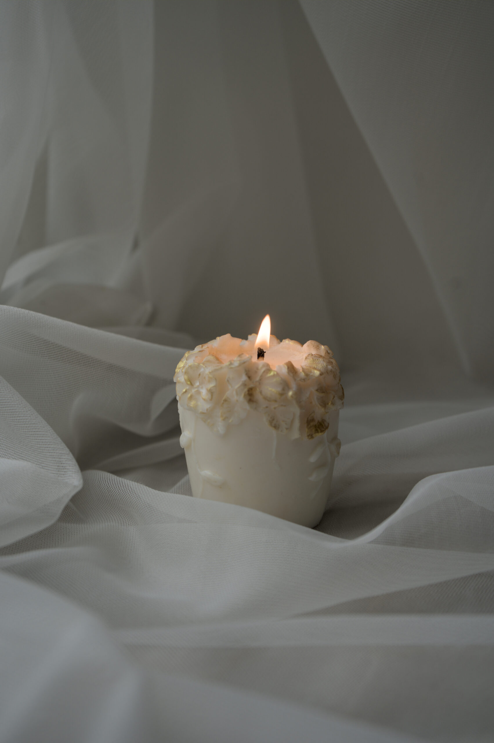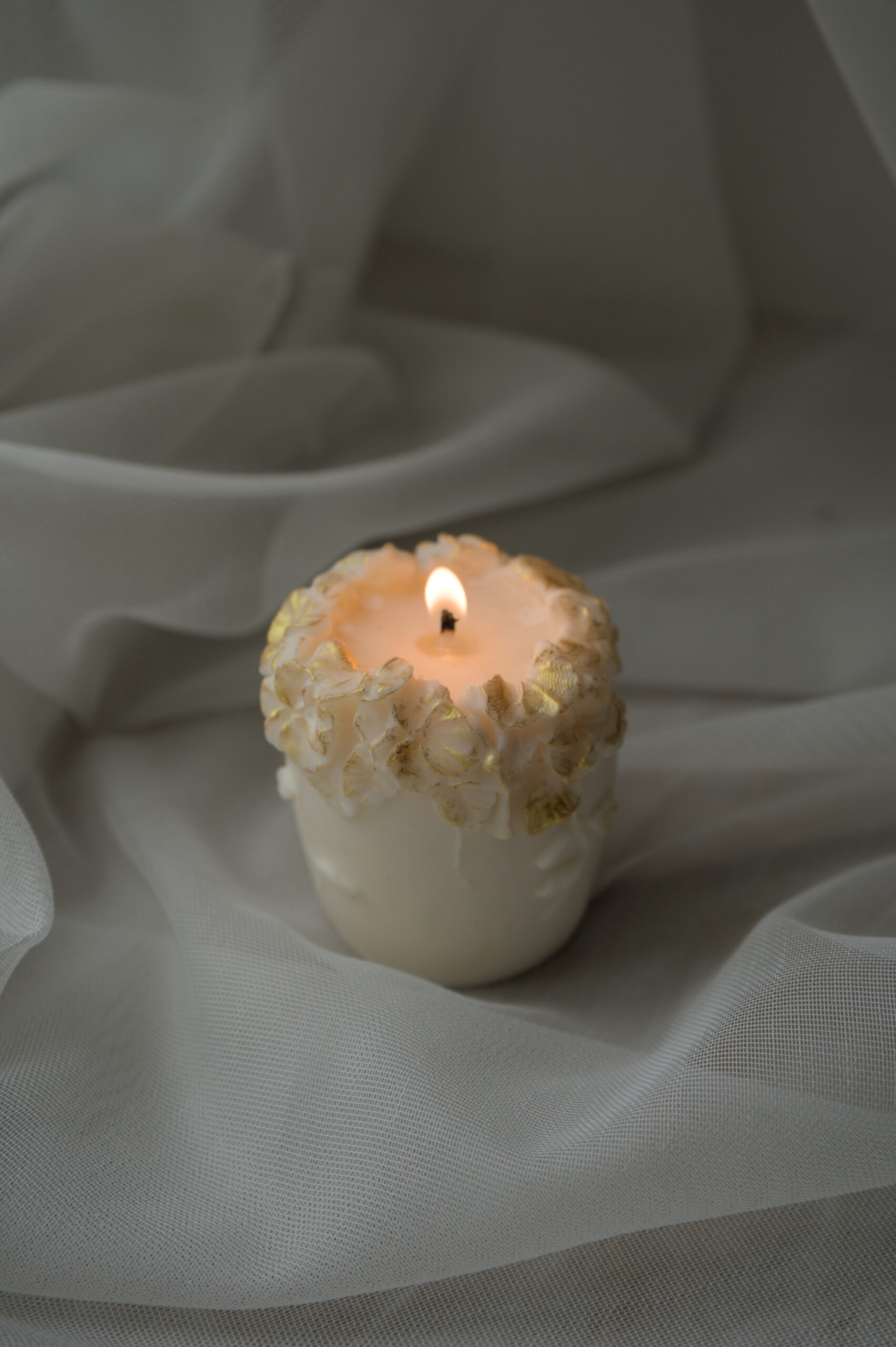 Diese formgefertigte Kerze besticht durch ihre feinen floralen Ornamente – zarte Blüten und sanfte Blütenblätter, die den oberen Rand umrahmen und ihr eine besonders elegante Ausstrahlung verleihen.